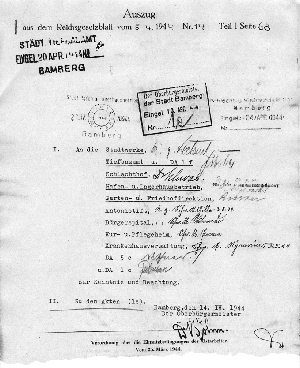 1945 erstellten Liste hervorgeht. Dort sind die in Bamberg