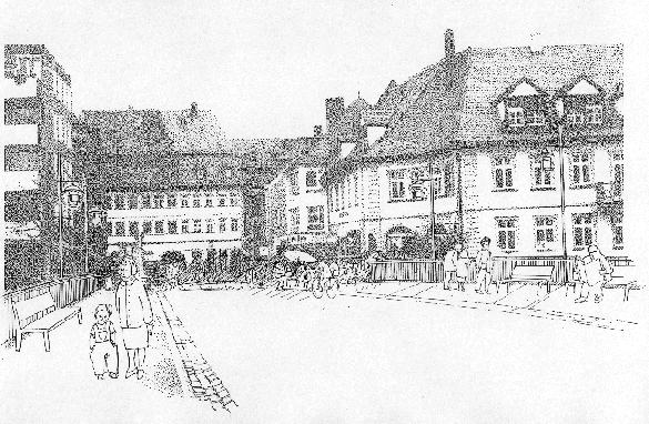 Anziehungspunkte wären Straßencafés, Spielpunkte für Kinder,