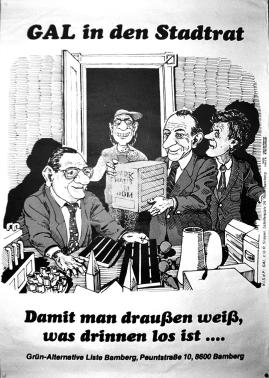 Wahlplakat der GAL zur Kommunalwahl 1984: Die drei Herren im