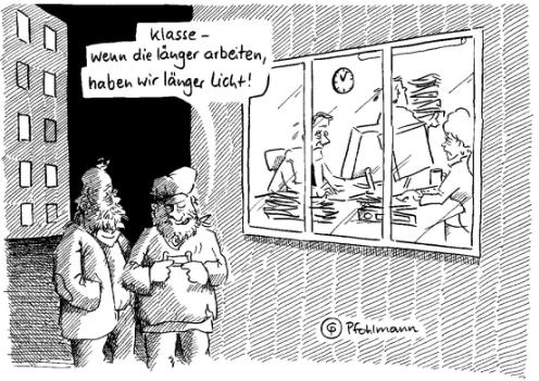 lässt er schuften wie blöd. Überstunden noch und nöcher. Und