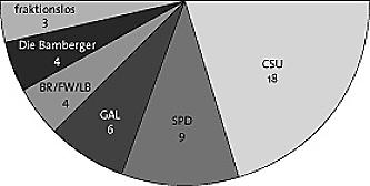 Sitzverteilung im Bamberger Stadtrat - Stand: 12. Juli 2006.