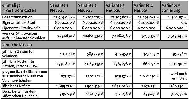 Hallenbades) und 1,125 Mio. Euro (Luxusvariante Neubau). Wer soll