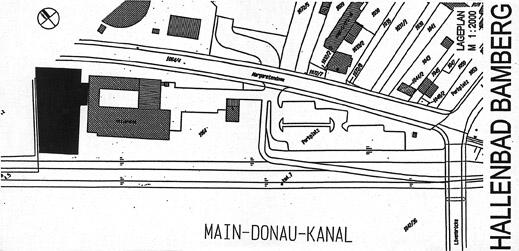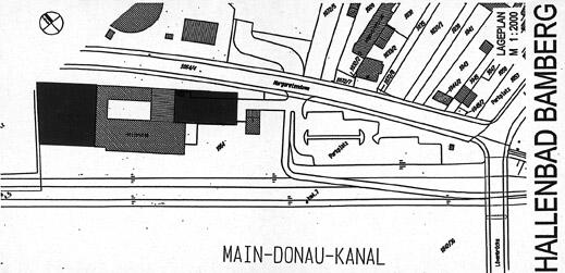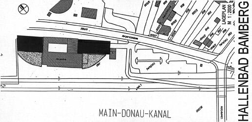 Gebäudebestand des Hallenbads, schwarze Flächen sind mögliche